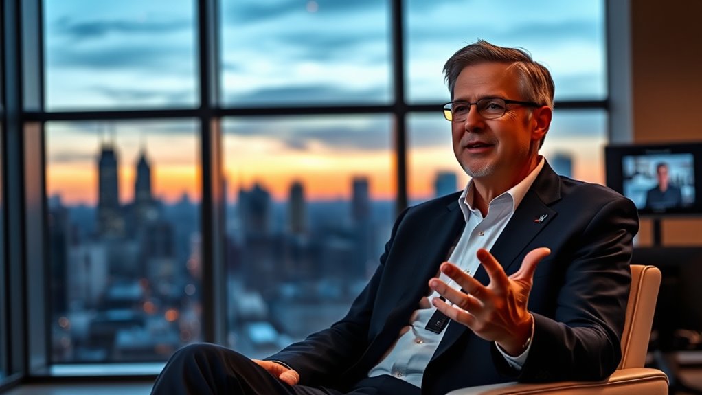 Bill McDermott’s net worth reflects his impactful leadership at ServiceNow, where he’s driving a vision centered on generative AI. He leverages AI to streamline workflows, boost innovation, and fuel company growth, positioning ServiceNow as a leader in digital transformation. This strategic focus on AI innovations has increased the company’s value and his own success. If you want to discover more about how his AI vision continues shaping the industry, keep exploring.