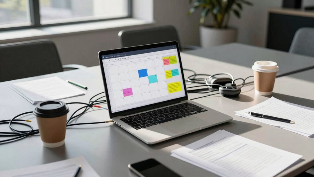 Additionally, these tools highlight the significance of effective communication in maintaining organized schedules and productive meetings. Ultimately, using smart schedulers forces you to confront the reality that meeting efficiency depends more on how you manage your time and set priorities than on the technology itself. They’re not magic bullets but mirrors that reflect the state of your team’s collaboration. The real challenge lies in addressing those root causes—improving your time management skills, establishing clear agendas, and fostering a culture that values productivity. Recognizing the importance of team dynamics can help create a more cohesive and efficient workflow. Only then can these tools support meaningful change, rather than merely exposing the chaos that’s already there.