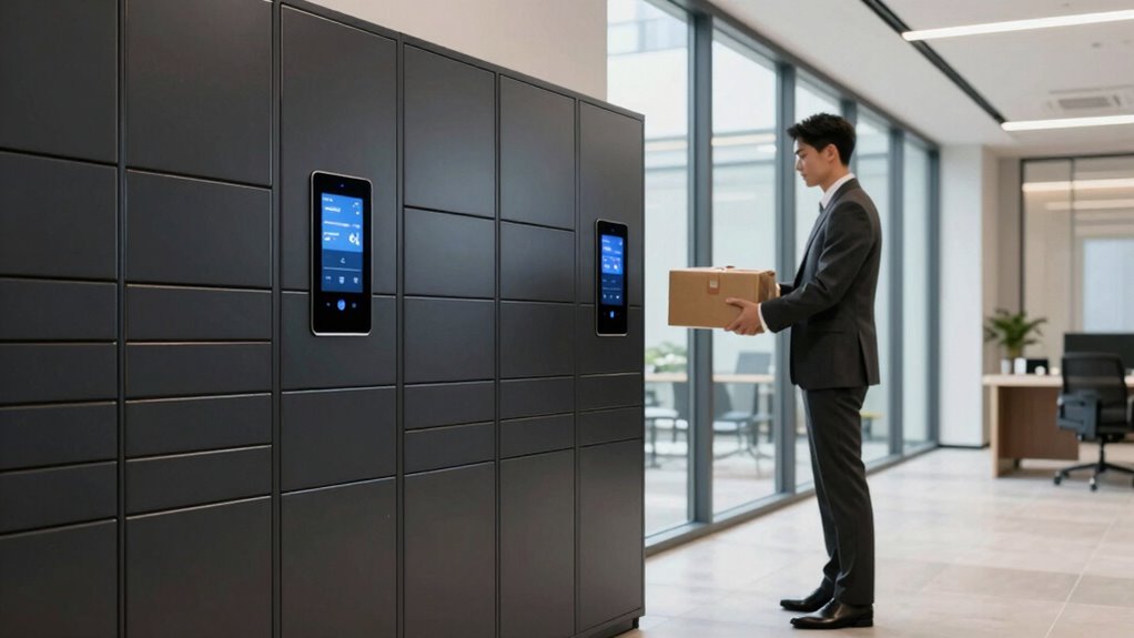 Have you ever struggled to receive packages during busy workdays? If so, you’re not alone. Juggling meetings, deadlines, and constant emails makes it challenging to find time to pick up deliveries. That’s where smart delivery lockers come in, transforming the way employees manage their packages. These lockers prioritize employee convenience, allowing you to retrieve your parcels at any time without disrupting your workflow. No more waiting around for a delivery person or rushing to the front desk before it closes. With smart lockers, you simply get an alert, head to the designated station, and open your package with a code or app. It’s a seamless process that saves you time and reduces stress. Integrating these lockers with home automation devices further enhances their functionality and convenience. Security enhancements are a key reason these lockers are gaining popularity in workplaces. Unlike leaving packages at your desk or in common areas, these lockers provide a secure environment for your deliveries. They’re equipped with advanced access controls, surveillance, and tamper-proof mechanisms, which considerably decrease the risk of theft or loss. You can feel confident that your personal items and important parcels are protected until you’re ready to pick them up. This added layer of security not only benefits individual employees but also promotes a sense of trust across the office. Employers appreciate that these lockers reduce the chances of misplaced or stolen items, streamlining inventory management and reducing potential liabilities. Additionally, security features are continually evolving, making these lockers an even more reliable option for safeguarding valuable deliveries. Incorporating sustainable small-space design principles into locker installations can also promote eco-friendly practices within the workplace. As technology advances, the integration of digital notification systems further enhances the convenience and efficiency of package management. Moreover, the use of blockchain technology in some lockers can provide an additional layer of transparency and security for delivery records. Beyond convenience and security, smart delivery lockers also contribute to a more modern, efficient workplace atmosphere. They eliminate logistical hassles, freeing up reception staff and reducing congestion in common areas. Employees can pick up their packages without waiting in lines or coordinating with delivery personnel, which enhances overall productivity. Many lockers are integrated with digital systems that notify you instantly about deliveries, so you don’t have to check constantly or worry about missing a delivery attempt. This technology-driven approach demonstrates a company’s commitment to employee well-being and operational excellence.