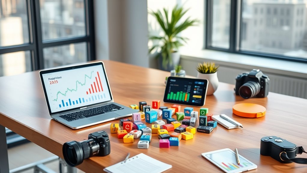 To build a top personal finance app toolkit for 2025, focus on integrating real-time investment tracking with automated budgeting. Guarantee the platform syncs smoothly with various investment accounts, offers clear visual interfaces, and automates expense categorization to reduce manual effort. Use intuitive designs with accurate colors to enhance user experience and trust. By combining these features, you’ll create a powerful tool that helps users stay on top of their finances and reach their goals—more insights await if you continue.