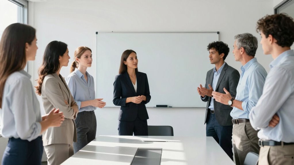 When disagreements arise during standing meetings, you should swiftly and respectfully address the issue. Use conflict resolution techniques like active listening and calm communication to manage disagreements. Encourage everyone to express their perspectives clearly, and steer the conversation toward common goals. By fostering a constructive, collaborative climate, you can defuse discord and keep the meeting moving productively, ensuring disagreements become opportunities for understanding rather than disruptions.