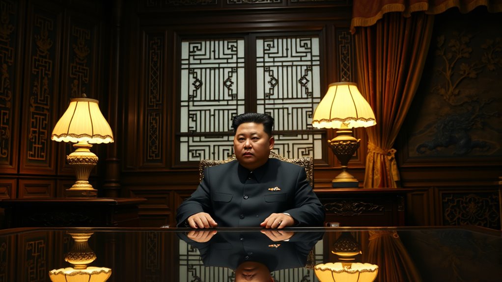 While Kim Jong Un’s exact net worth remains a mystery, it’s clear he wields immense wealth and power behind closed doors. If you consider a hypothetical scenario, imagine a leader who controls not only political authority but also vast financial resources, enabling them to influence global affairs. This secret fortune sustains his regime and keeps his hold on North Korea unchallenged—reminding you how financial secrecy can be a powerful tool for maintaining control and dominance.