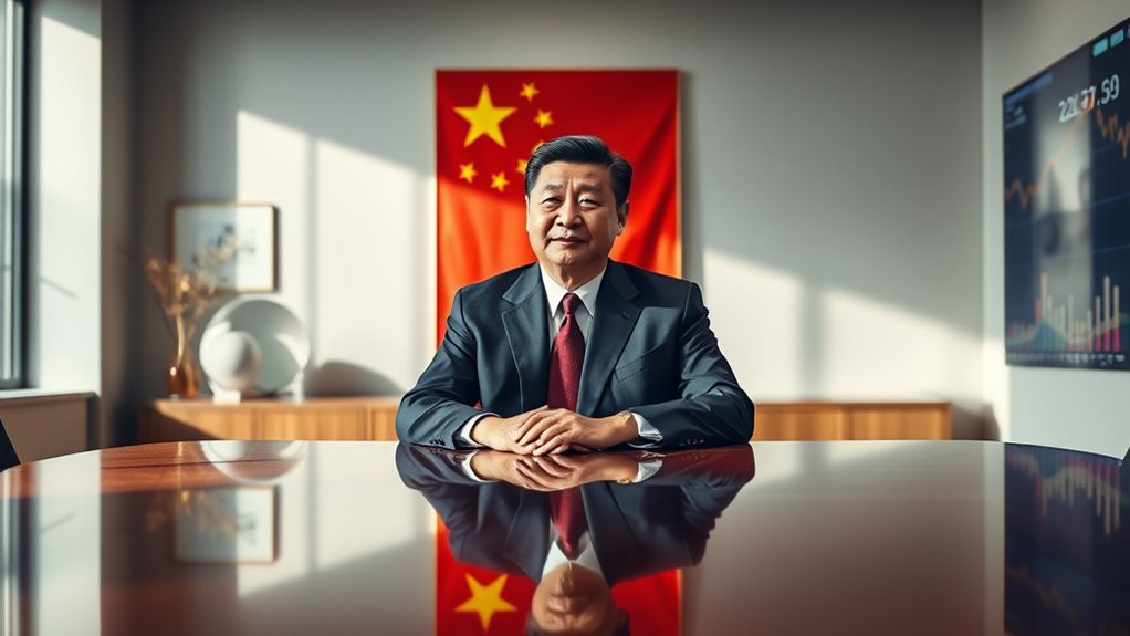 Imagine steering a vast ship through turbulent waters—that’s how Xi Jinping influences China’s economic policies. You see him guiding corporate reforms, tightening regulations, and prioritizing social policies to stabilize growth. His hands shape the economy’s course, balancing modernization with control. By setting these priorities, he directly impacts markets and daily lives, ensuring the nation remains resilient amid global challenges. His leadership molds China’s economic future with decisive, strategic moves.