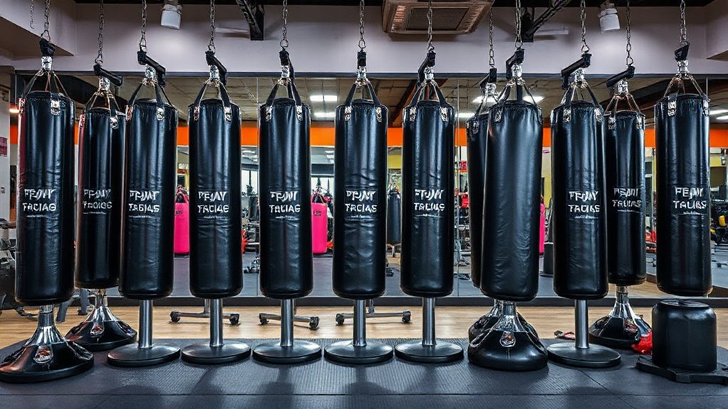 Choosing a heavy bag stand that’s easy to install can save you time and frustration. Look for models with clear, detailed instructions that guide you step-by-step through the setup process. It’s helpful if the stand includes all necessary mounting hardware and tools, so you don’t have to hunt for extras. An adjustable height feature that’s simple to modify without complex equipment also makes installation quicker. A stable base design that requires minimal effort to secure provides peace of mind and reduces setup time. Additionally, opt for stands with user-friendly mounting options compatible with common wall or floor types. These features ensure you can get your heavy bag ready for training without hassle, so you can focus on your workout instead of wrestling with complicated assembly.