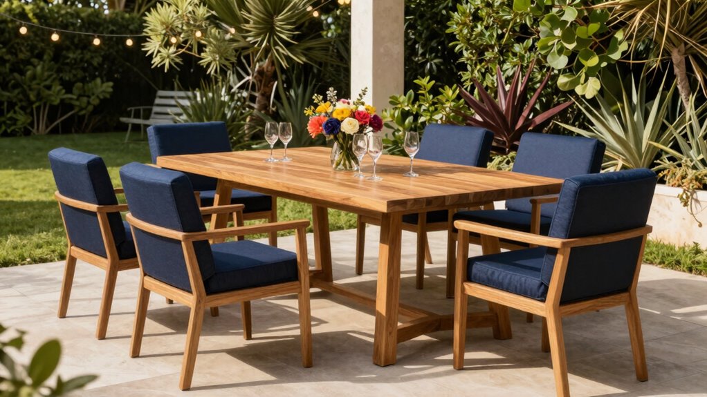Choosing the right outdoor dining set can feel overwhelming, but I believe it’s like finding the perfect puzzle piece—when it fits, everything clicks. Curiously, studies show that well-designed outdoor spaces boost mood and social bonds. So, whether you opt for a cozy 5-piece or a spacious 9-piece set, I’m convinced that creating your ideal patio isn’t just about style—it’s about crafting a space that brings joy and connection. Happy patio shopping!