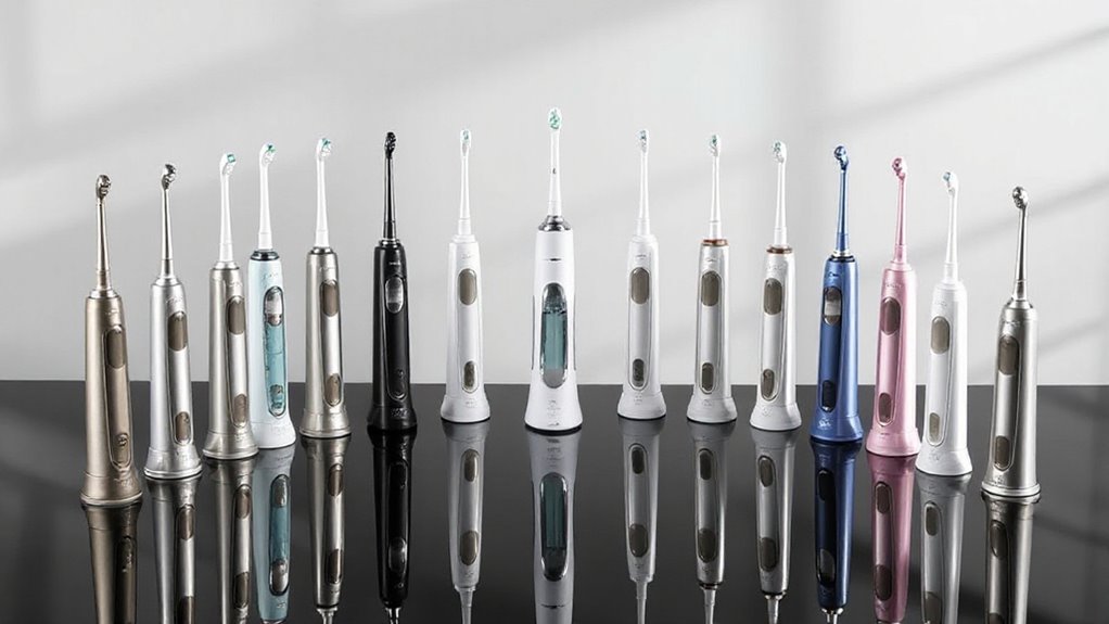 Choosing a water flosser with versatile nozzles can substantially enhance your oral hygiene routine. Multiple nozzle options, such as orthodontic, periodontal, tongue cleaning, and standard tips, allow you to target specific dental needs effectively. Interchangeable nozzles make it easy to customize your routine, especially if you have braces or sensitive gums. Color-coded tips help with hygienic sharing among family members, simplifying identification. Adjustable nozzles with rotating or flexible heads improve access to hard-to-reach areas and help you find the best cleaning angle. Some premium models also include specialized tips, like plaque removers or deep tissue massagers, providing targeted solutions for different oral health concerns. Overall, versatile nozzles ensure a more personalized and efficient cleaning experience.