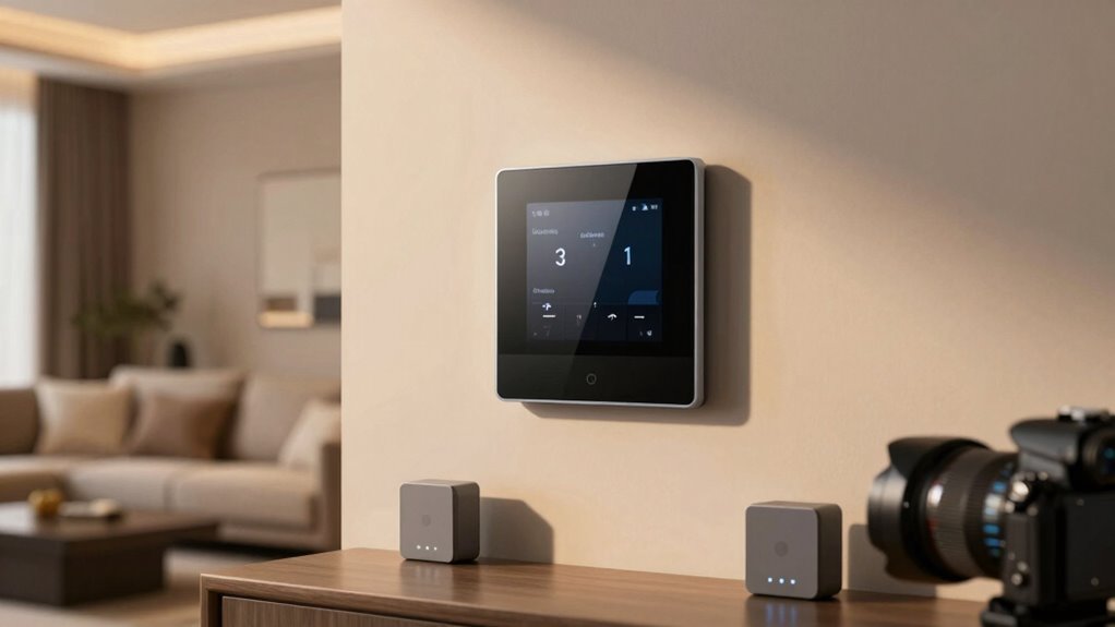 Smart thermostats with room sensors can considerably cut energy bills by intelligently adjusting heating and cooling based on occupancy and temperature data. They often save up to 23-26% annually by detecting when rooms are unoccupied and automatically lowering or raising temperatures. Features like occupancy detection and activity sensors help prevent unnecessary energy use, ensuring heating or cooling only happens where and when it’s needed. Multiple temperature and humidity sensors in different rooms maintain consistent comfort levels and eliminate uneven heating or cooling that wastes energy. Some models use radar or motion detection technology for precise occupancy monitoring. Integration with room sensors enables zone-specific climate control, which targets active areas and maximizes efficiency. These smart features make a significant difference in reducing energy consumption and lowering utility costs.