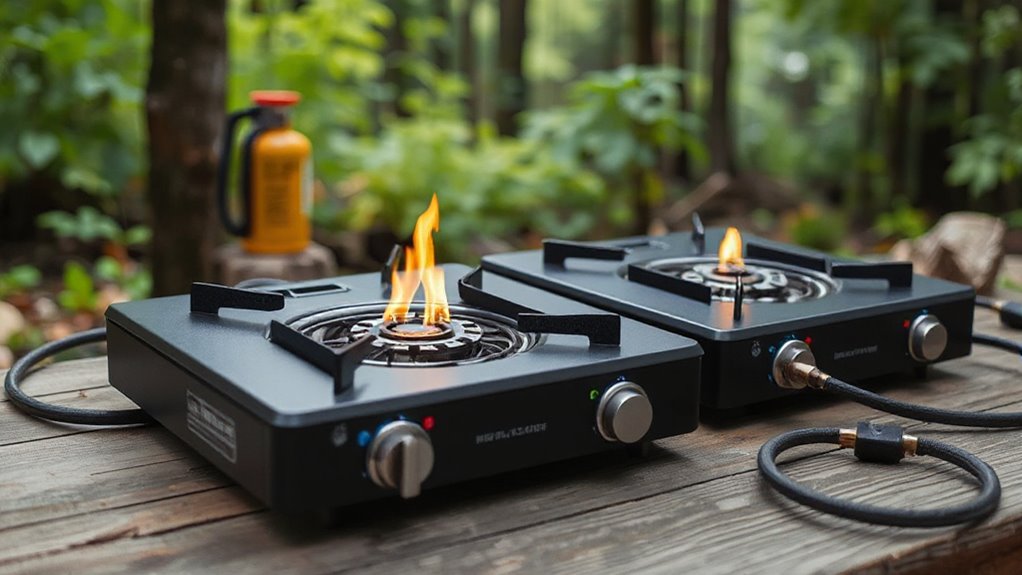 Choosing the right two-burner propane camping stove is like finding the perfect campfire—it needs to be reliable, efficient, and fit your style. I remember my first trip when a dependable stove made all the difference, turning chaotic mornings into smooth adventures. With options like the Coleman Triton or Camp Chef Explorer, you’re equipped to cook up memories and meals alike. Trust your needs, and you’ll have a trusty companion for every outdoor feast ahead.