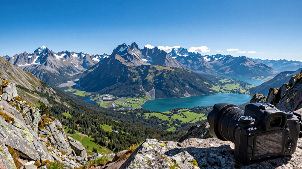 Choosing the right wide-angle lens can truly transform your landscape shots, much like discovering a secret passage in a grand castle. Whether you prefer the versatility of a zoom or the sharpness of a prime, there’s a perfect fit for your style. Remember, even in our modern age, a great lens, much like a trusty quill, remains essential for capturing breathtaking scenes. So, pick wisely and let your creativity run wild—your next masterpiece awaits just beyond the horizon.